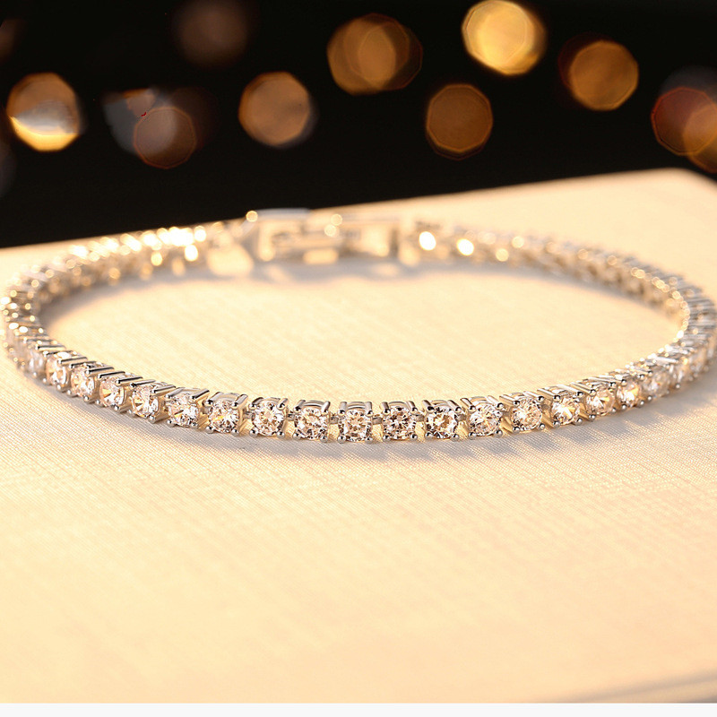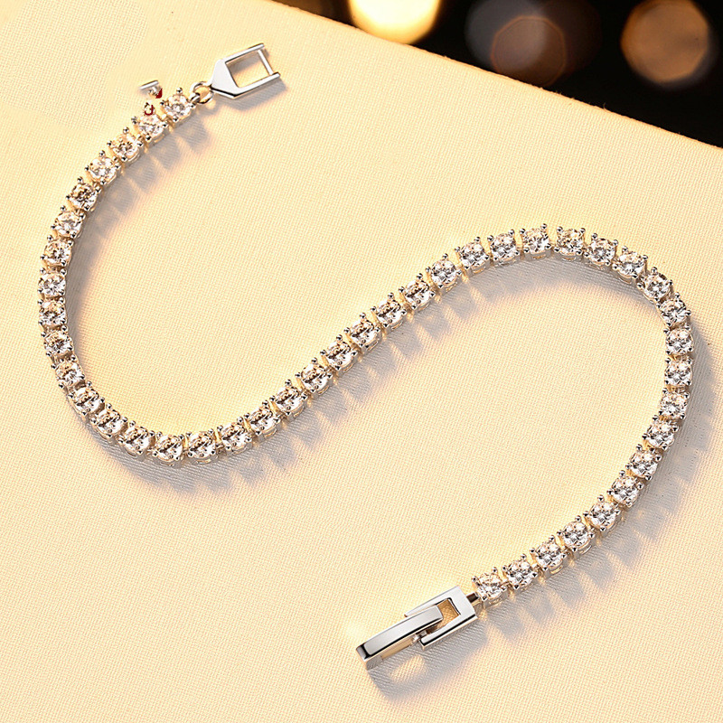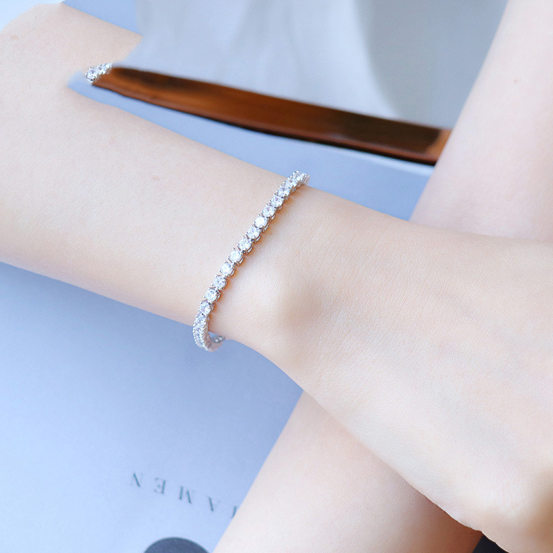 925 Sterling Silver Bracelet Female Korean Version Of Simple Four-Claw High Drag Simulation Carat Silver Bracelet Jewelry Factory Wholesale